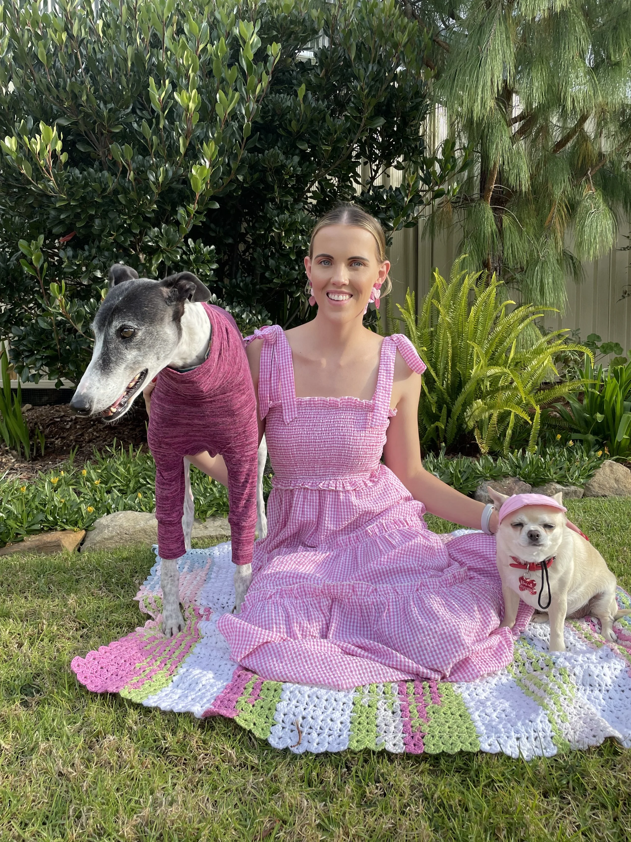 I still usually have either my Boyfriend (Justin) or my Mum (Julie) at my Markets still to help me setup & run the stall with me! I also bring my Chihuahua (Poppy) & sometimes my Greyhound (Cookie) to Markets too to model the stock (obviously!)